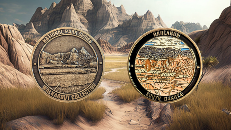 Capture the breathtaking beauty of Badlands National Park with this stunning die-struck Challenge Coin. Commemorate your visit, give as a gift, or simply treasure it as a lasting reminder of your unforgettable experience in America’s great outdoors. Part of the Walkabout Collection's National Park Series, this National Park Challenge coin will be a timeless keepsake and a long-lasting heirloom that you will cherish for years to come.